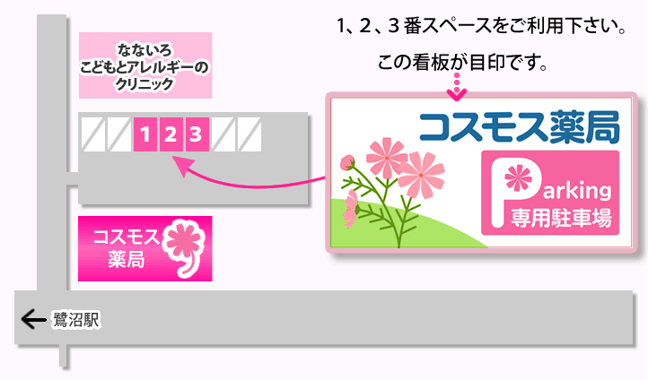 当薬局駐車場をご利用ください。